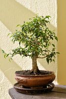Bonsai van een Ficus benjamina op een balkon. De Ficus benjamina is zeer geschikt voor het maken van een bonsai, omdat hij niet erg gevoelig is en gemakkelijk te verzorgen.