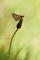 Een bont dikkopje rustend op weegbree in Breinig in de duitse eifel
