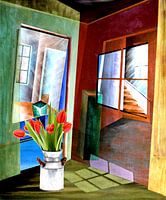 Ik schilder voornamelijk met olieverf op doek. Mijn motieven zijn kamers. Ik experimenteer ook met roest. Af en toe maak ik een uitstapje naar abstract schilderen. Sinds ongeveer een jaar combineer ik mijn geschilderde schilderijen met foto's... Lees verder…