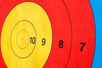 Boogschieten doel schoon, 10, 9, 8,7. Geel en rood. Bullseye.