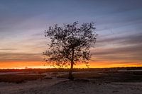 Een plaatje van een Zonsondegrang in de Loonse en Drunense Duinen in Noord-brabant met een gecentreerde boom in de compositie. Adembenemende kleuren in de lucht triggeren jou om deze plek in de Brabantse Sahara binnenkort te bezoeken.