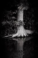 De weerspiegeling is prachtig en de omzetting in zwart wit geeft de foto kracht.