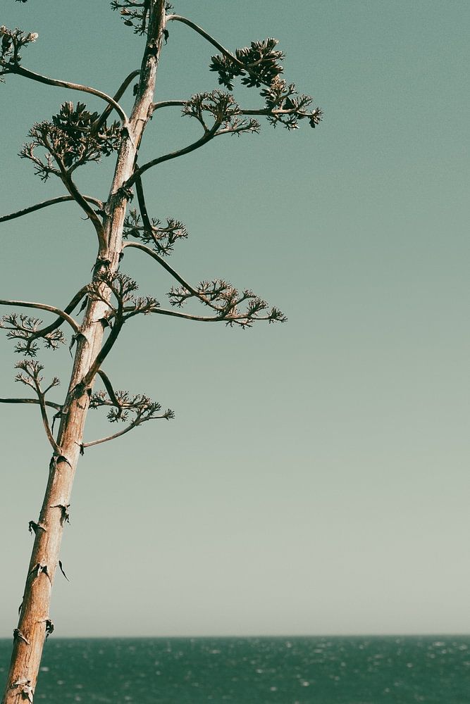 Ik heb dit beeld een wat meer vintage vibe gegeven omdat ik het contrast wat wilde verzachten tussen de wit/bruin van de boom, de blauw van de lucht (en de oceaan) en het groen van de bladeren. Maar de warme oranje gloed van de zomer en de droogte wilde ik er wel uit laten springen.