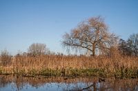 Boom tussen het riet bij het water in het natuurgebied Klotputten in Eindhoven.