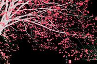 Een fotobewerking van takken van een boom. De rode bladeren en de Japanse tekens wekken de indruk dat het hier om Japanse kunst gaat. Niets is minder waar. Dit is puur mijn fantasie die ik op deze foto heb losgelaten.
