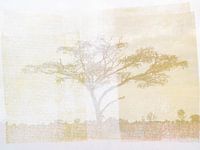 Dit mixed media kunstwerk combineert fotografie en schilderkunst op een bijzondere manier. Als basis dient een foto van een boom in een uitgestrekt steppe landschap in Oeganda. Deze foto is gecombineerd met een laag verf, wat het geheel een extra dimensie en diepte geeft.