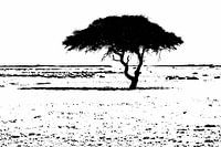Uitgestrekt en vergezichten. Een boom in het landschap en verder niets. Wat een mooie natuur in Namibië., Africa Zwart wit, natuur, landschap,