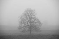 Boom in de mist Gasteren Drenthe van Rick Goede