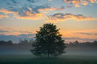 In een lager gelegen gebied staan enkele vrijstaande bomen waaronder deze. Door de ligging ontstaat snel grondmist.