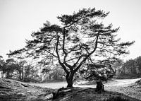 Een forse hoosbui trekt over de Korte Duinen bij Soest. Een kort moment breekt de avondzon nog door de wolken heen en zet de boom en de regen in een prachtig tegenlicht.
