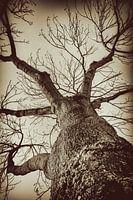 Deze boom staat pal voor mijn huis. Vol en groen in het blad in de zomer, kaal in de winter. Hier is deze boom klaar voor het winterseizoen.