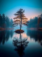 Koop dit landschapskunstwerk Boom in het meer van haroulita op canvas, aluminium dibond, (ingelijste) fotoprint, behang en ArtFrame, op maat geprint in Fine-Art kwaliteit.