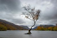 eenzaam boompje staat het hele jaar rond met zijn voetjes in het water. Iconische plek in Wales; geliefd bij fotografen