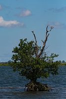 Midden op het water staat er ineens een boom vlakbij het eiland Tiengemeten. Het is een vreemd gezicht.