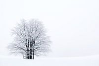 Deze alleenstaande boom werd gefotografeerd in de Franse Vogezen. Daar valt in de winter zeer veel sneeuw. Dat geeft mooie contrasten met de donkere bladloze bomen.