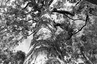 Kijk omhoog in deze prachtige eucalyptus boom en zie het spel van lijnen en licht in de natuur. Deze foto is genomen in Australië.