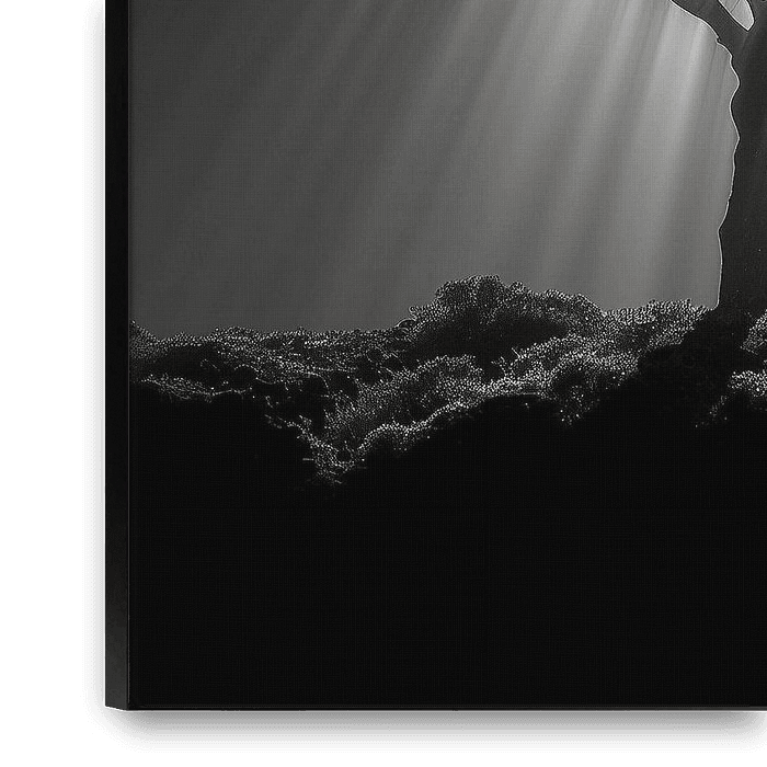 Jouw gekozen kunst op doek, gespannen in een aluminium frame. Snel en eenvoudig te verwisselen voor een frisse uitstraling en helemaal zoals jij het wilt.