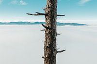Koop dit landschapskunstwerk Boom met afgehakte takken voor ochtendmist van Besa Art op canvas, aluminium dibond, (ingelijste) fotoprint, behang en ArtFrame, op maat geprint in Fine-Art kwaliteit.