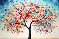 Breng kleur en harmonie in je interieur met dit unieke schilderij. De cirkels en lijnen creëren een speels en minimalistisch effect dat perfect past in een moderne woonkamer of hobbykamer.