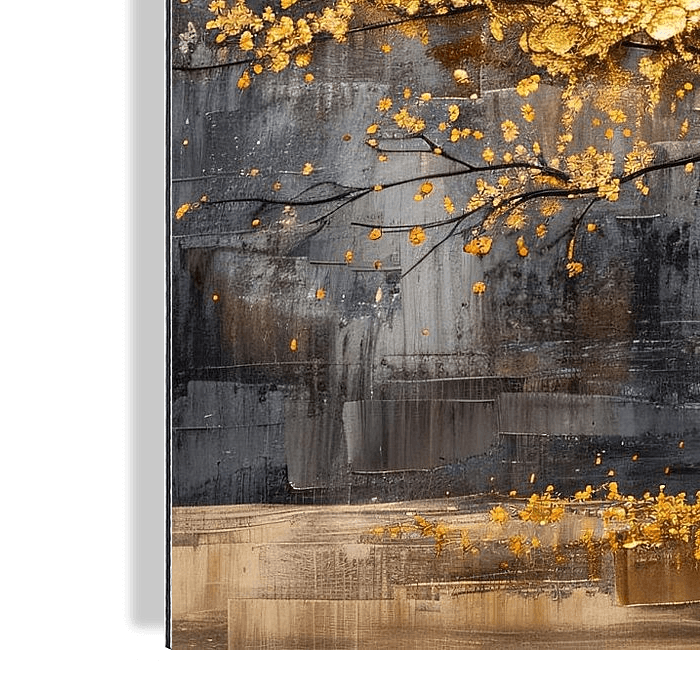 Dit unieke kunstwerk toont een majestueuze boom met stralende gouden bladeren tegen een abstracte achtergrond. De glinsterende bladeren geven het ontwerp een luxueuze en warme uitstraling, perfect om een ruimte een vleugje elegantie te geven. Het schilderij straalt moderne kunst uit, terwijl het toch een tijdloze schoonheid heeft. De…