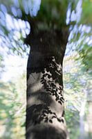 Creatief beeld van deze boom. Ik hou van de schaduwen die de bladeren en zon creëren op de stam.