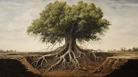 Boom met wortels die diep in de grond reiken, in olieverf-look