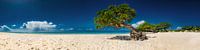 Weidse panoramafoto van Eagle Beach met een prachtige oude boom op het eiland Aruba.