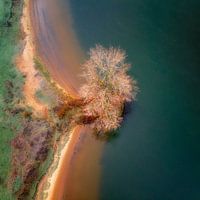 Een boom aan de van rivier de Maas bij Gewande in Noord-Brabant, Nederland