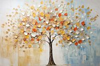 Dit werk toont een imposante boom die kracht en rust uitstraalt. De gedetailleerde weergave van de takken en bladeren contrasteert prachtig met de zachte kleuren van de achtergrond, waardoor een serene en tijdloze sfeer ontstaat. Het is een perfect stuk voor wie een natuurlijke, kalmerende uitstraling wil toevoegen aan hun interieur. De boom staat symbool voor stabiliteit en groei, wat dit werk bijzonder geschikt maakt voor elke ruimte waarin een vleugje natuur gewenst is.