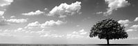 Dit betoverende kunstwerk legt de sublieme schoonheid vast van een eenzame boom in een uitgestrekt sneeuwlandschap, meesterlijk vastgelegd in zwart-wit. De dramatische schaduwen van de boom strekken zich uit over de sneeuw en creëren een indrukwekkend samenspel van licht en duisternis. De dramatische wolkenformaties en het schitterende zonlicht voegen een extra laag diepte en dynamiek toe aan het beeld. Perfect voor liefhebbers van moderne fotografische kunst en degenen die een elegante, tijdloze esthetiek in huis willen halen.