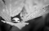 Dit specifieke exemplaar zat mooi boven op een bramenblad een uitgebreid ochtend dutje te doen. Door middel van zwart wit fotografie is deze kikker nog beter te zien.