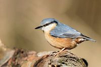 Boomklever (Sitta europaea) in het voorjaar in het natuurreservaat Mönchbruch bij Frankfurt, Duitsland.