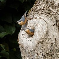 Boomklevers op zoek naar voedsel. zij zoeken op de boomstam, tussen schors en kieren naar beestjes.