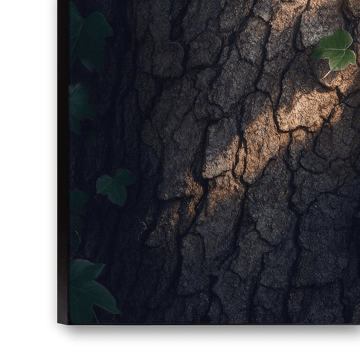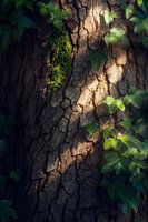 De indrukwekkende texturen van de boomschors, afgewisseld met zachte lichtspelingen en omlijst door zachtgroene bladeren, creëren een harmonieuze verbinding met de natuur. Deze levendige voorstelling brengt frisheid en rust in je woonkamer en creëert een uitnodigende sfeer die je uitnodigt om te ontspannen en te blijven hangen.