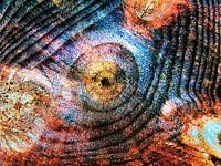 Close-up van een boomstamdoorsnede met jaarringen gemengde techniek