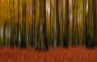 Een surrealistiche benadering van bomen in het herfstbos tijdens een herfstwandeling op de Veluwe in Gelderland.
