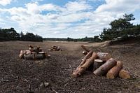 Op het Wekeromse Zand liggen deze boomstammen als een soort stilleven in de wijdse omgeving. Naast zandverstuivingen vind je in dit prachtige gebied een paar vennetjes en als je geluk hebt zie je moeflons.