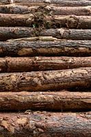 Genk Limburg Belgium Lumber piled up in a forest. bos, timber, trees, trunks, bomen, boomstammen, hout, Nationaal Park Hoge Kempen