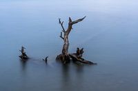 Grafische foto van een boomstronk in het water.