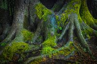 Na de regen, komen de kleuren op boomwortels duidelijk naar voren.