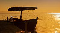 Boot aan de steiger bij zonsondergang