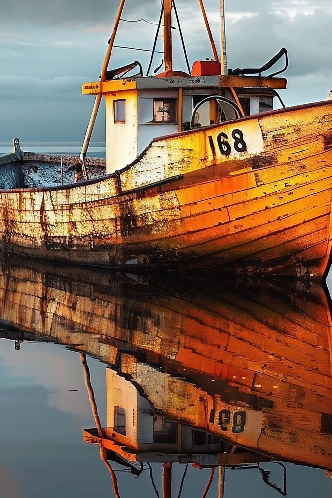 Koop dit landschapskunstwerk Boot in een kalme zee van fernlichtsicht op canvas, aluminium dibond, (ingelijste) fotoprint, behang en ArtFrame, op maat geprint in Fine-Art kwaliteit.