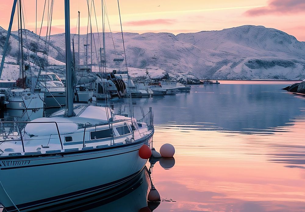 Boot in het koude fjordlicht