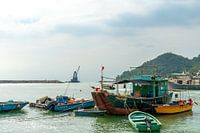 Boten in het water van de zee in de haven van Tai O fishing village op Lantau Island in Hong Kong