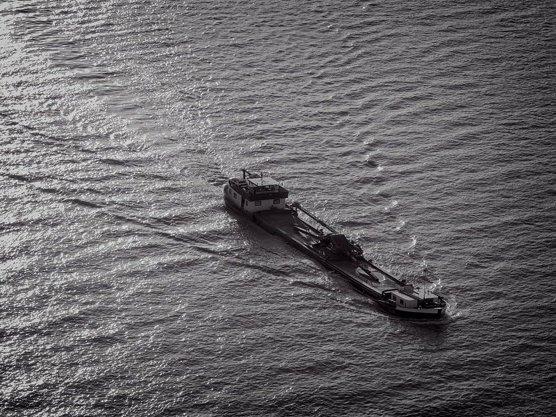 Voor deze foto stond ik boven op een kantoorpand nabij Hotel New York in Rotterdam. De foto is genomen aan het einde van de middag, met een licht briesje, De foto os in de nabewerking omgezet naar een monochroom beeld
