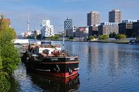 Koop de foto Boot op de Spree en Skyline Berlijn van Matthias Hauser op canvas, aluminium dibond, (ingelijste) fotoprint, behang en ArtFrame, op maat geprint in Fine-Art kwaliteit.