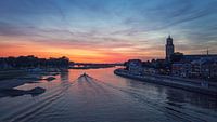 Boot vaart in de IJssel langs de skyline van Deventer van Karla Leeftink