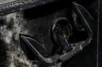 Uitsnede van een anker hangend aan een oude antieke sleepboot uit de 19e eeuw.
