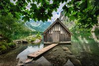 * Uitzicht op het meer * Obersee aan de Königssee in het Berchtesgadener Land. Boothuis in Berchtesgaden / Beieren met prachtig bergpanorama.