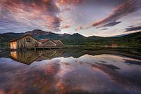 Zonsopgang op het meer bij Garmisch Partenkirchen en Kochel am See tegen een prachtige alpiene achtergrond.